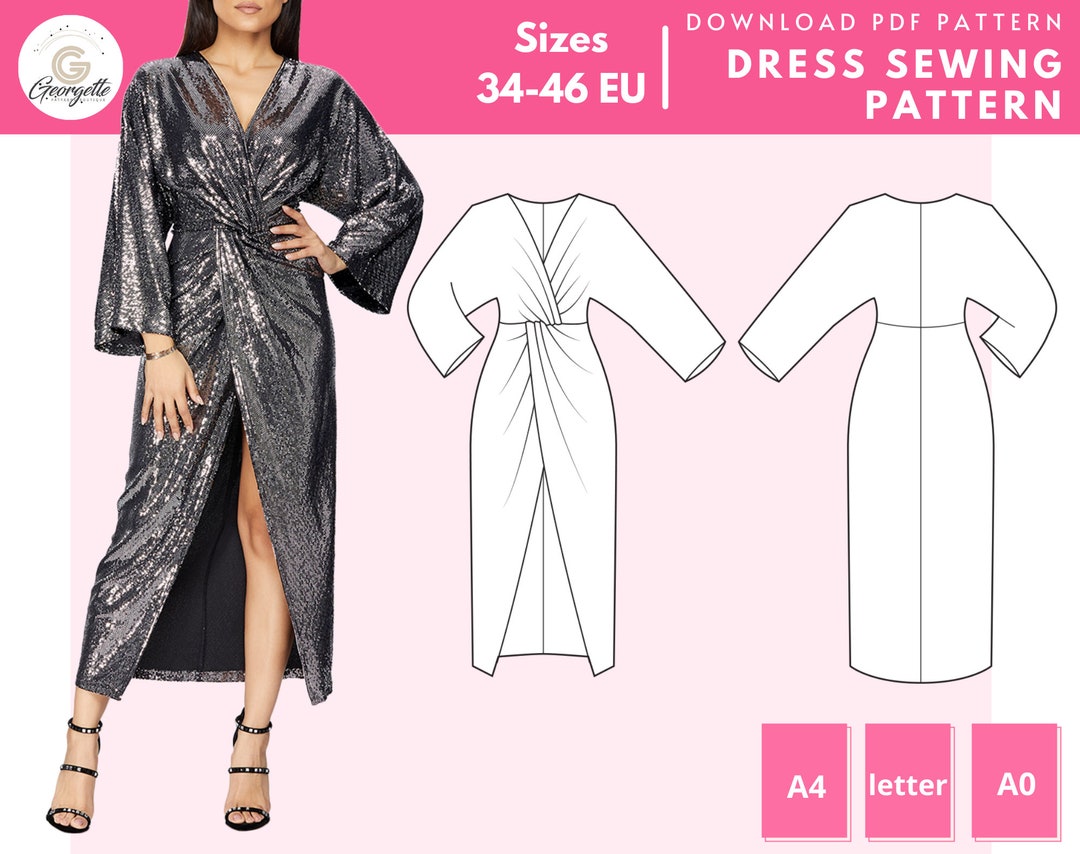 Carla Midi Elegant Dress Sewing Pattern 34 36 38 40 42 44 46 Etsy